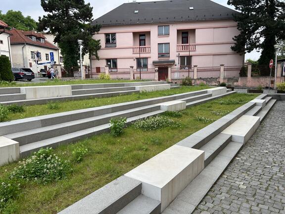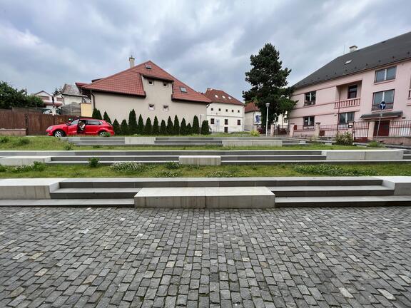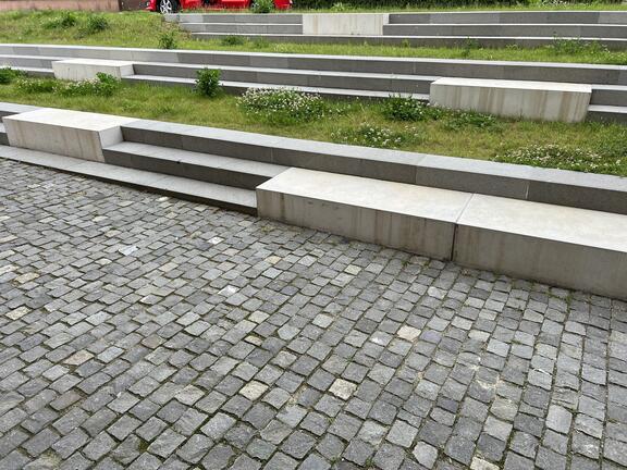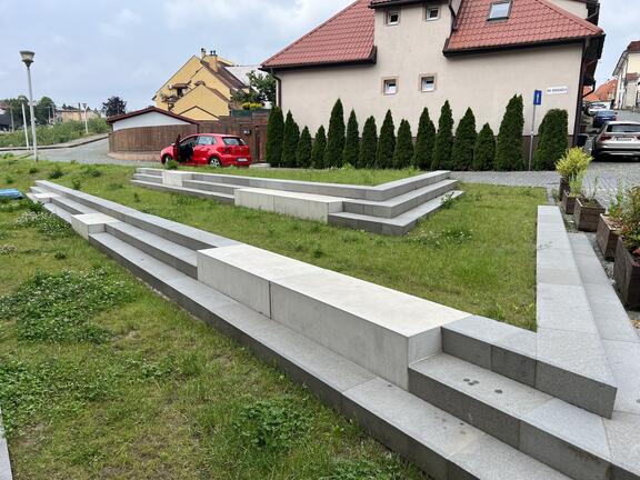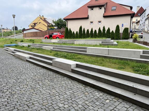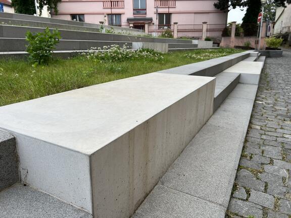 For this project, we made blocks of exposed gray concrete. Their use is clear, they serve as seating, and they are part of the amphitheater in Bardejov.